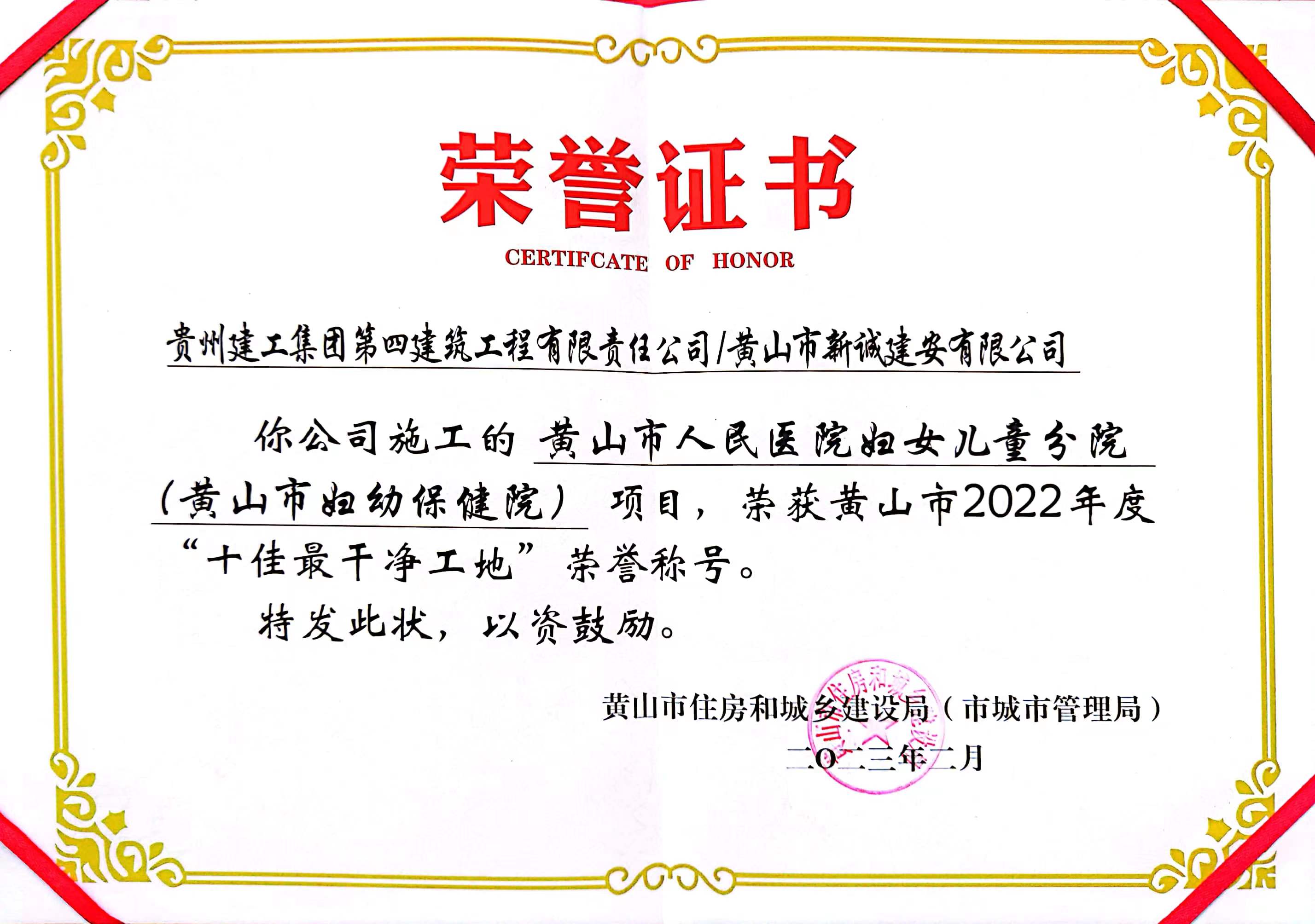 黃山市人民醫(yī)院婦女兒童分院項目榮獲2022年度“十佳最干凈工地”榮譽(yù)稱號